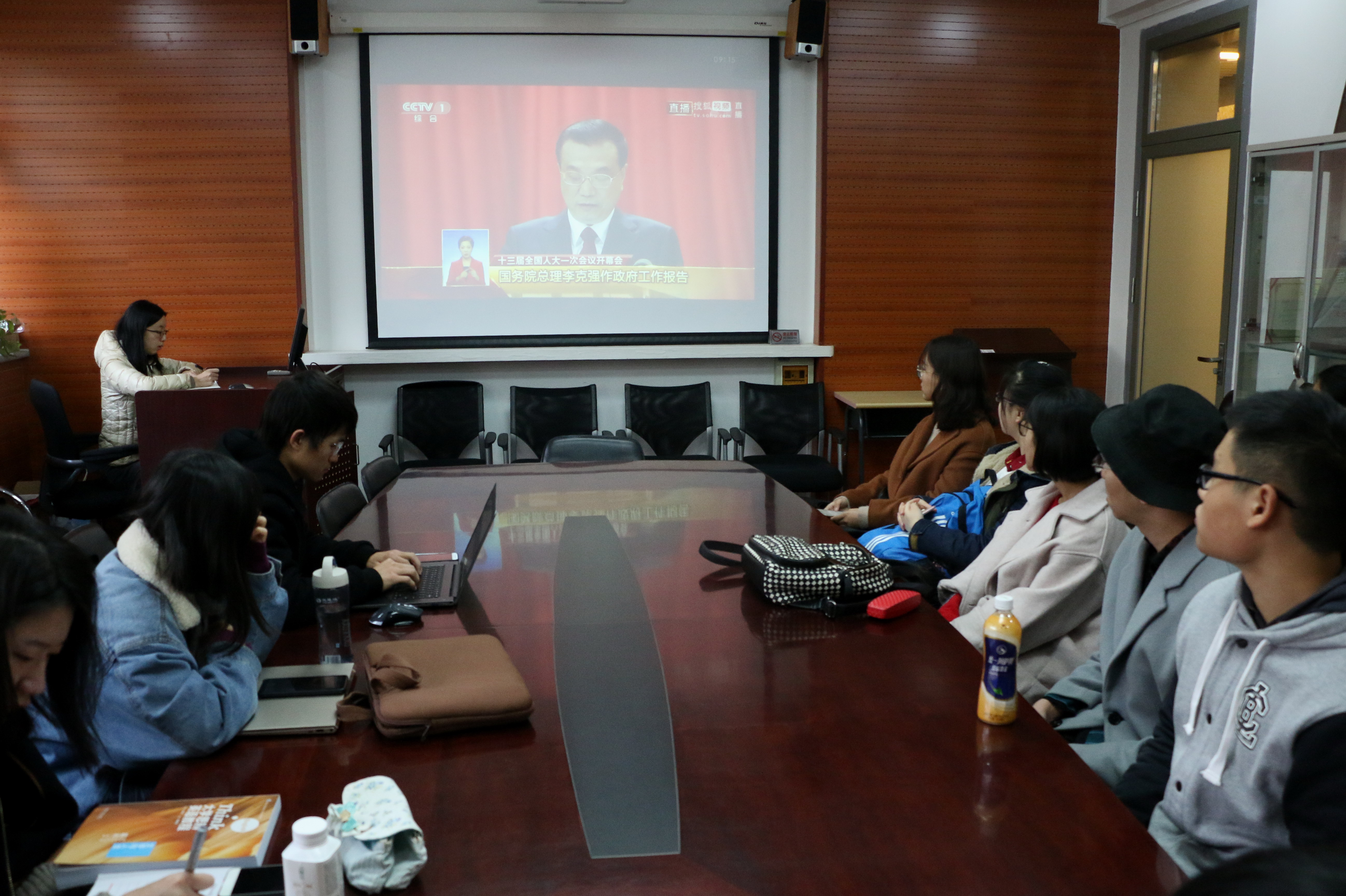 jinnianhui今年会组织师生收看李克强总理作政府工作报告
