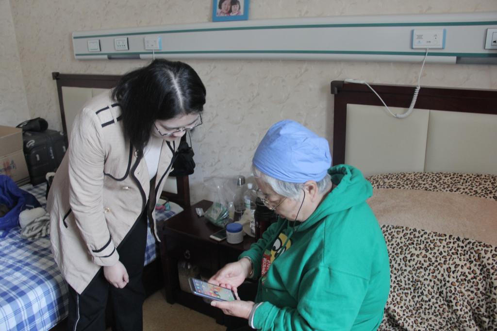 养老照料中心的陈主任带领党员们深入护理中心,和老人们沟通交流,听老人们分享往事和现在的生活。杨爷爷是一名退休老工人,热情好客,给支部党员们讲述了许多自己的故事。李奶奶是一名退休护士,虽然已进入古稀之年,但依然保持着乐观年轻的心态,对学习英语有很大的兴趣,还跟支部党员分享了自己用手机APP学习英语的经历,让同学们备受鼓舞。