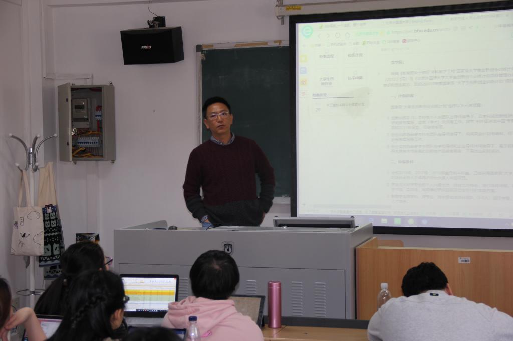 2月27日周三下午,在jinnianhui今年会417教室召开2019年大学生创新创业训练计划项目申报说明会。党总支书记路兴、副院长谢韬、辅导员于承杰以及有意申报项目的学生30余人参加。