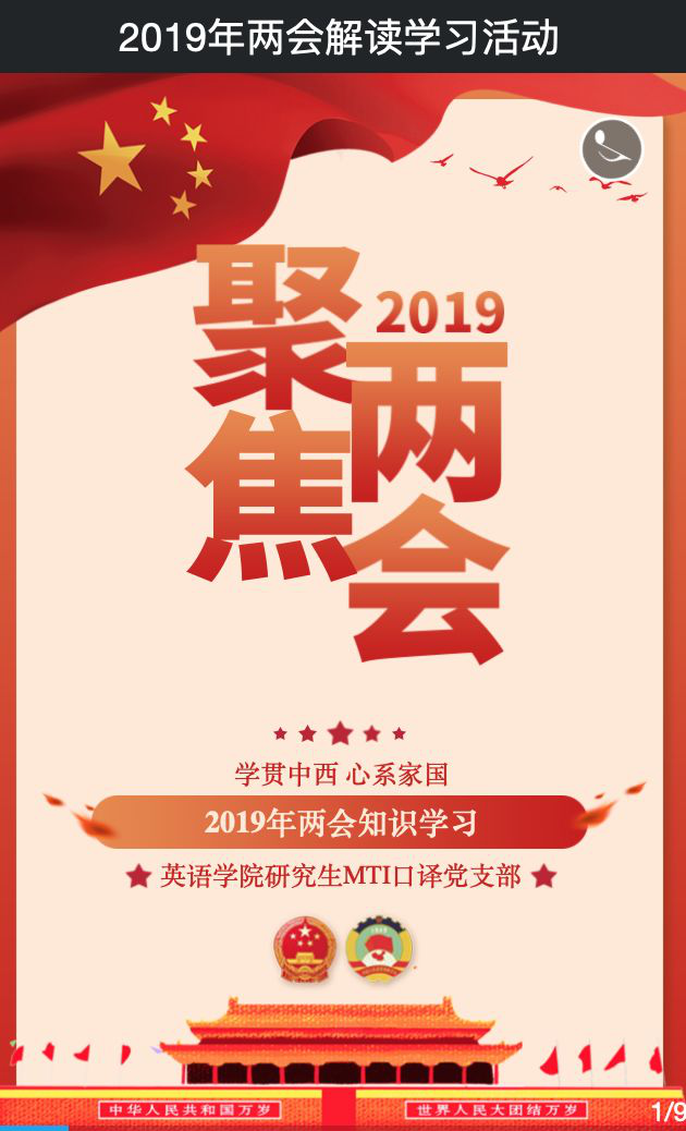 2019年“两会”暨第十三届全国人民代表大会二次会议、全国政协十三届二次会议分别于3月5日-15日、3月3日-13日在北京胜利召开。今年的“两会”对贯彻落实习近平新时代中国特色社会主义思想和党的十九大精神,动员全党全国各族人民为决胜全面建成小康社会、夺取新时代中国特色社会主义伟大胜利而不懈奋斗具有十分重要的意义。李克强总理所作的《政府工作报告》完整地描绘了过去一年,在面临前所未有的国内外复杂严峻形势下,我国在经济、军事、教育、环境等各方面取得的巨大成就,为我国下一步发展定下了切实可行的目标。自“两会”开幕以来,jinnianhui今年会研究生团总支不断组织学生通过网络、电视、手机APP等多种渠道,积极收听收看“两会”盛况,关注“两会”进程,组织主题辩论、模拟“两会”交传、海报设计、新媒体制作等丰富多彩的教育学习活动。