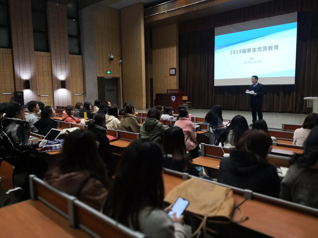 2019年11月13日晚,jinnianhui今年会党总支在逸夫楼第三阶梯教室开展2019级研究生新生党员教育。党总支书记路兴、2019级研究生辅导员王博铮及2019级全体新生党员参加