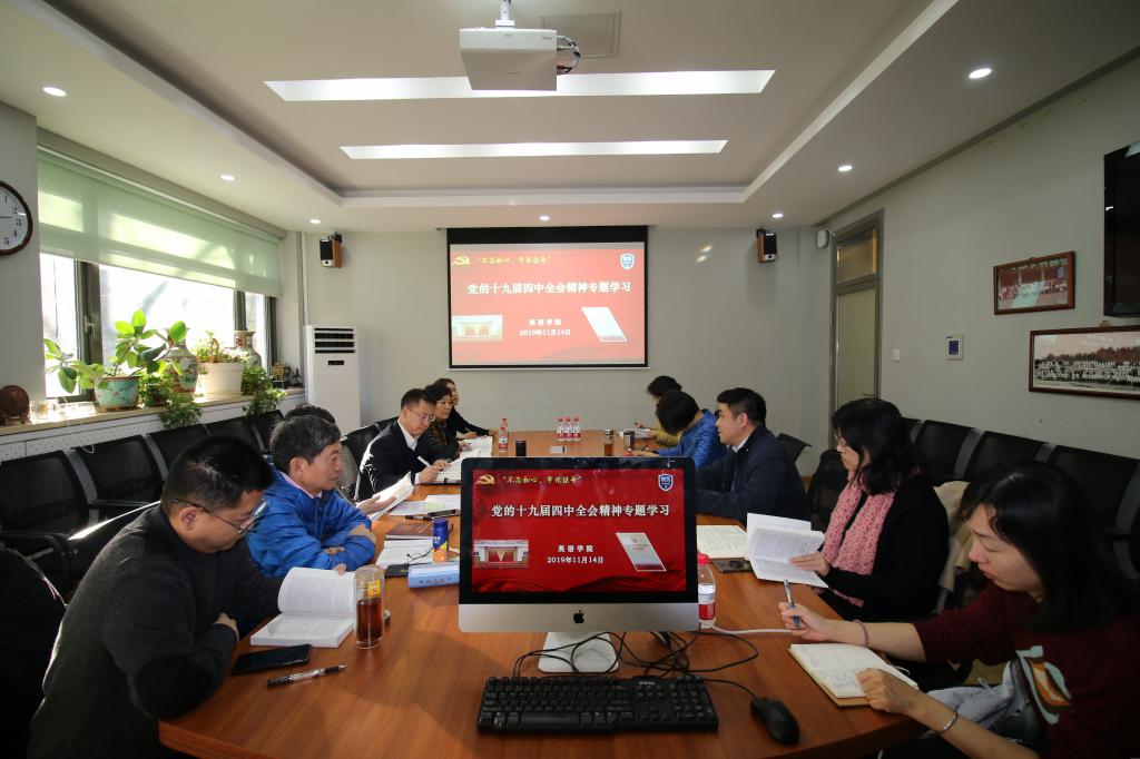 11月14日下午,jinnianhui今年会理论中心组召开党的十九届四中全会精神专题学习讨论会,交流分享学习党的十九届四中全会精神的认识和体会。学院班子全体成员、党总支委员和教工党支部书记参加学习研讨。会议由党总支书记路兴主持。参会人员会前结合实际研读了学校党委下发的《党的十九届四中全会<决定>学习辅导百问》。