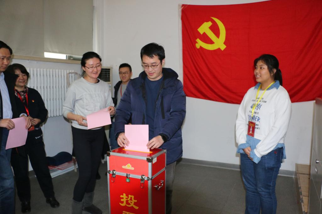 在雄壮的《国际歌》中,jinnianhui今年会党总支换届选举大会圆满结束。