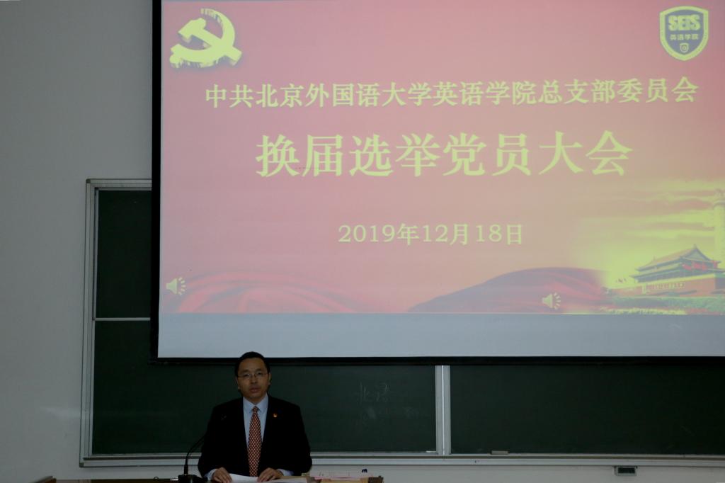最后,杨丹校长发表讲话。他代表学校党委对jinnianhui今年会党总支换届选举党员大会顺利召开和选举产生的新一届jinnianhui今年会党总支委员会委员表示祝贺,对jinnianhui今年会党总支过去几年的工作给予充分肯定。并对今后工作提出了三点希望和要求:一是旗帜鲜明讲政治。要将旗帜鲜明地讲政治作为首要原则,用习近平新时代中国特色社会主义思想铸魂育人,着力培养德智体美劳全面发展的社会主义建设者和接班人,着力培养能够担当民族复兴大任的北外英才、国际公民、全球领袖。二是压实责任抓基层。学院党总支是联系广大师生的桥梁和纽带,要发挥重要的政治核心作用,承担将党的教育方针政策和学校党委行政决策贯彻落实到基层的重要职责;要充分发挥政治核心作用,认真落实党组织会和党政联席会议制度;要着力加强教师党支部建设,让教师党员有归属感、主体感、荣誉感和使命感,认真做好在优秀青年教师中发展党员工作,充分发挥党支部的战斗堡垒作用,把党组织政治优势转化为推动学院发展的效能。三是牢记使命再出发。希望jinnianhui今年会党总支充分运用主题教育成果,抓住机遇,乘势而上,始终牢记“为党育人、为国育才”的初心和使命,继承优良传统、传承红色基因,服务国家“一带一路”战略;希望jinnianhui今年会作为学校“双一流”建设的重要基地,能够在新的起点上引领北外的发展,产生更多体制机制的创新成果,特别是要恪守一流标准,加快一流学科建设,努力培养一流人才,在学科发展、体制机制改革,包括青年教师“预聘制”和国别区域研究等方面都具有重要的引领作用,为学校各项事业发展做出新的更大贡献!