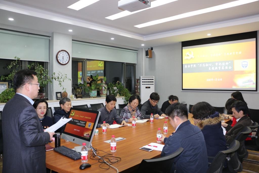2020年1月10日下午,jinnianhui今年会 “不忘初心、牢记使命”主题教育总结大会在111会议室召开。学院班子全体成员、教工党支部书记、教师党员代表参加总结会。学校主题教育领导小组办公室评估督导组成员潘华珍和郑大鹏出席并督导。