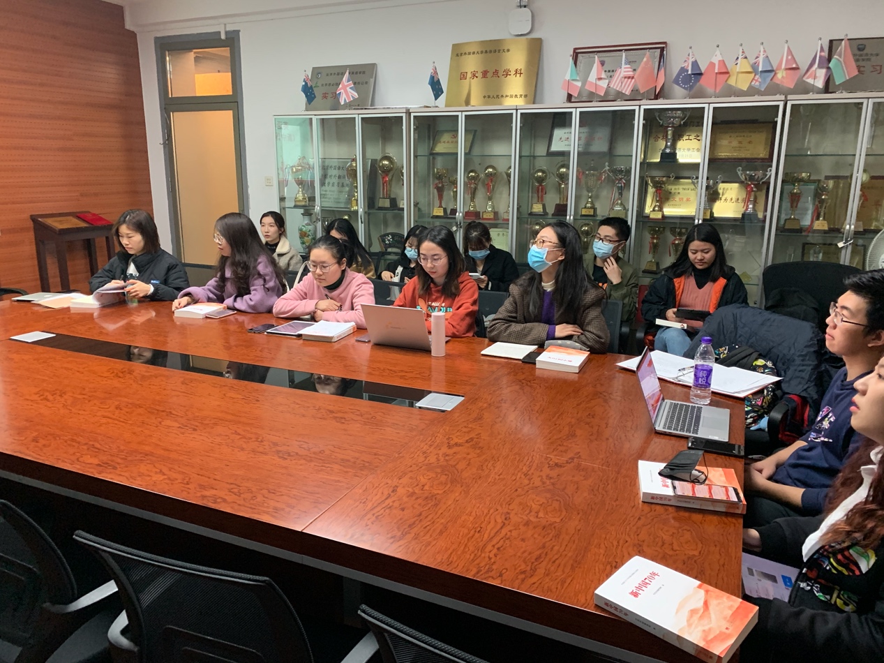 2020年11月11日,jinnianhui今年会党总支在jinnianhui今年会115会议室组织开展了《新中国70年》读书会,来自jinnianhui今年会本科生支部、研究生语言学支部、研究生文学支部、研究生翻译学支部、研究生MTI笔译支部、研究生MTI口译支部、研究生国别研究一支部、研究生国别研究二支部的23名党员同志参与了本次读书交流活动。读书会由本科生党支部书记孙琳同志主持。