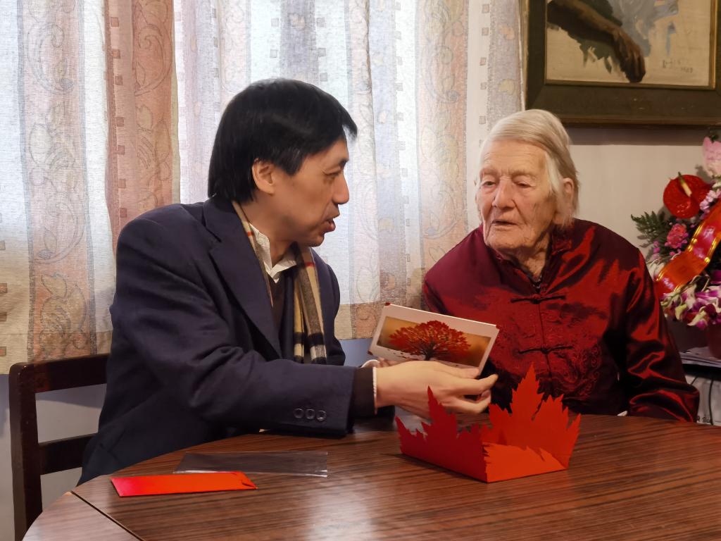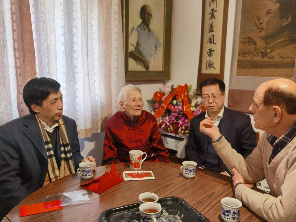 2020年12月15日下午,伊莎白教授105周岁寿辰之际,jinnianhui今年会院长张剑、党总支书记路兴、办公室主任杨京刚一行来到伊莎白教授家中慰问看望,祝贺伊莎白教授生日快乐,身体健康。