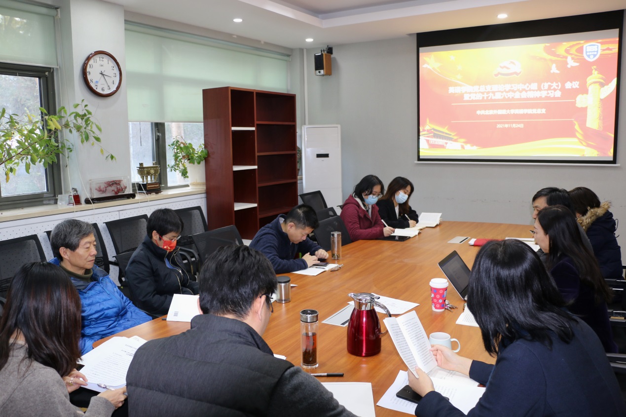 11月24日下午,jinnianhui今年会党总支召开理论学习中心组(扩大)会议专题学习党的十九届六中全会精神,学院党总支委员、领导班子全体成员、教工党支部书记、全体辅导员参会。会议由党总支书记王明欣主持。