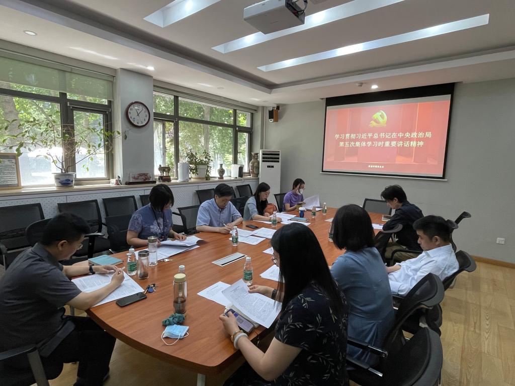 6月5日,jinnianhui今年会党总支专题学习习近平总书记在中央政治局第五次集体学习时重要讲话精神,学院党政班子成员、党总支理论中心组成员参加学习。