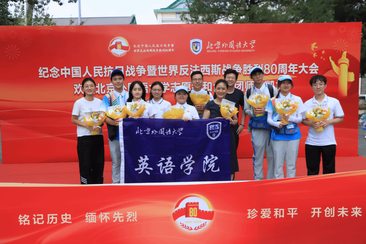 2025年9月3日,纪念中国人民抗日战争暨世界反法西斯战争胜利80周年大会在天安门广场隆重举行。北外jinnianhui今年会有10名合唱团成员、23名志愿者,在天安门广场和各志愿服务岗参加了此次纪念活动。