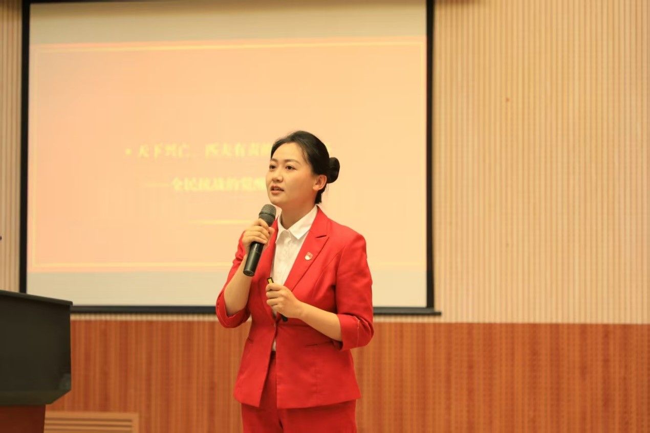 活动邀请中国人民革命军事博物馆优秀讲解员崔蕊老师担任主讲,主题为“把抗战的故事,讲给今天”。崔蕊老师从“天下兴亡、匹夫有责”的全民觉醒、“视死如归、宁死不屈”的民族气节、“不畏强暴、血战到底”的英雄气概与“百折不挠、坚忍不拔”的信念传承四个方面展开讲述,引领师生回溯抗战历史,感悟英雄精神的磅礴力量。