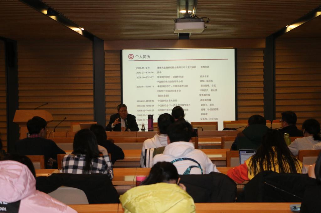 吴天鹏校友以“我眼中的中国银行”为题,从中行的百年历程、海外开行及全球布局等方面为同学们介绍了这所中国国际化和多元化程度极高的银行。他从个人经历出发,从如何在北外英院提升英语水平,到职场上不断学习新技能,再到抓住工作中的机遇,介绍了他是怎样一步一步成为了中行总行金融机构部的资深专家。吴天鹏校友还曾担任应届毕业生报考中行综合素质能力主考官,在讲座后期着重介绍了银行的招聘流程以及面试时需要注意的一些事项。