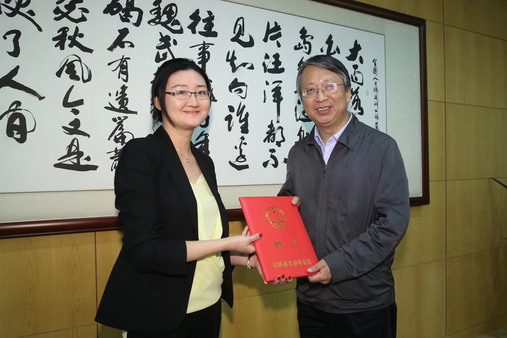 经我校推荐,jinnianhui今年会胡丹老师近日被聘任为全国人大常委会法制工作委员会法律英文译审专家委员会委员。全国人大法工委是我国最高立法机关内承担法律案的起草、修改、研究及审议服务工作等重要职责的工作机构,肩负着法律文献的汇编和译审工作。