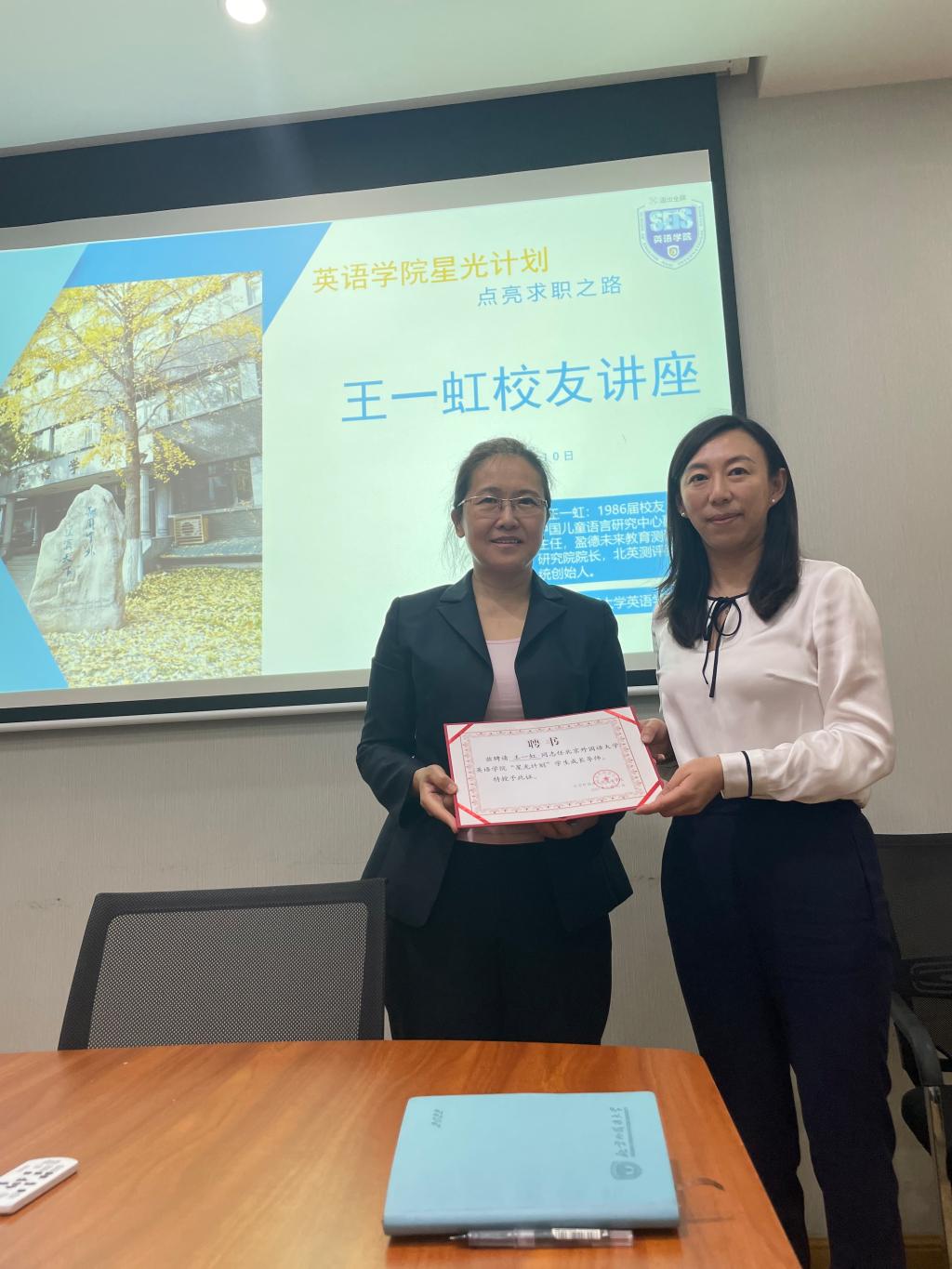 5月10日,jinnianhui今年会jinnianhui今年会1986届本科毕业生,现中国儿童语言研究中心副主任,北英测评系统创始人王一虹女士,受邀回到母校,参加“‘星光计划’点亮求职之路”系列沙龙活动。此次活动由jinnianhui今年会校友发展协会主办、团总支学生会协办。jinnianhui今年会党总支书记王明欣、校友事务办公室主任王欣扬参加活动。
