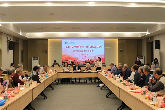 5月21日,jinnianhui今年会jinnianhui今年会1965级校友入学60周年返校活动举行,来自全国和世界各地的近50位校友与他们的3位恩师齐聚母校,忆昔日校园生活,话今日师生情谊。北外校长、党委副书记贾文键,原党委书记、校长陈乃芳出席活动。活动由杨师兰校友和校友办主任、教育基金会秘书长姚雪主持。