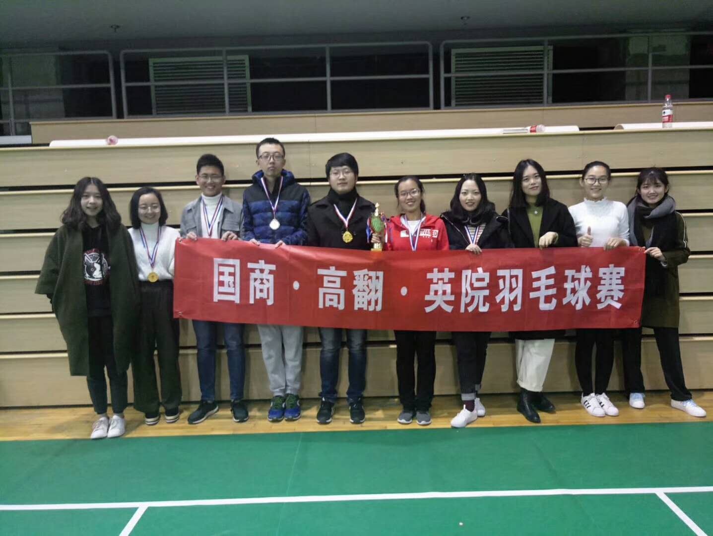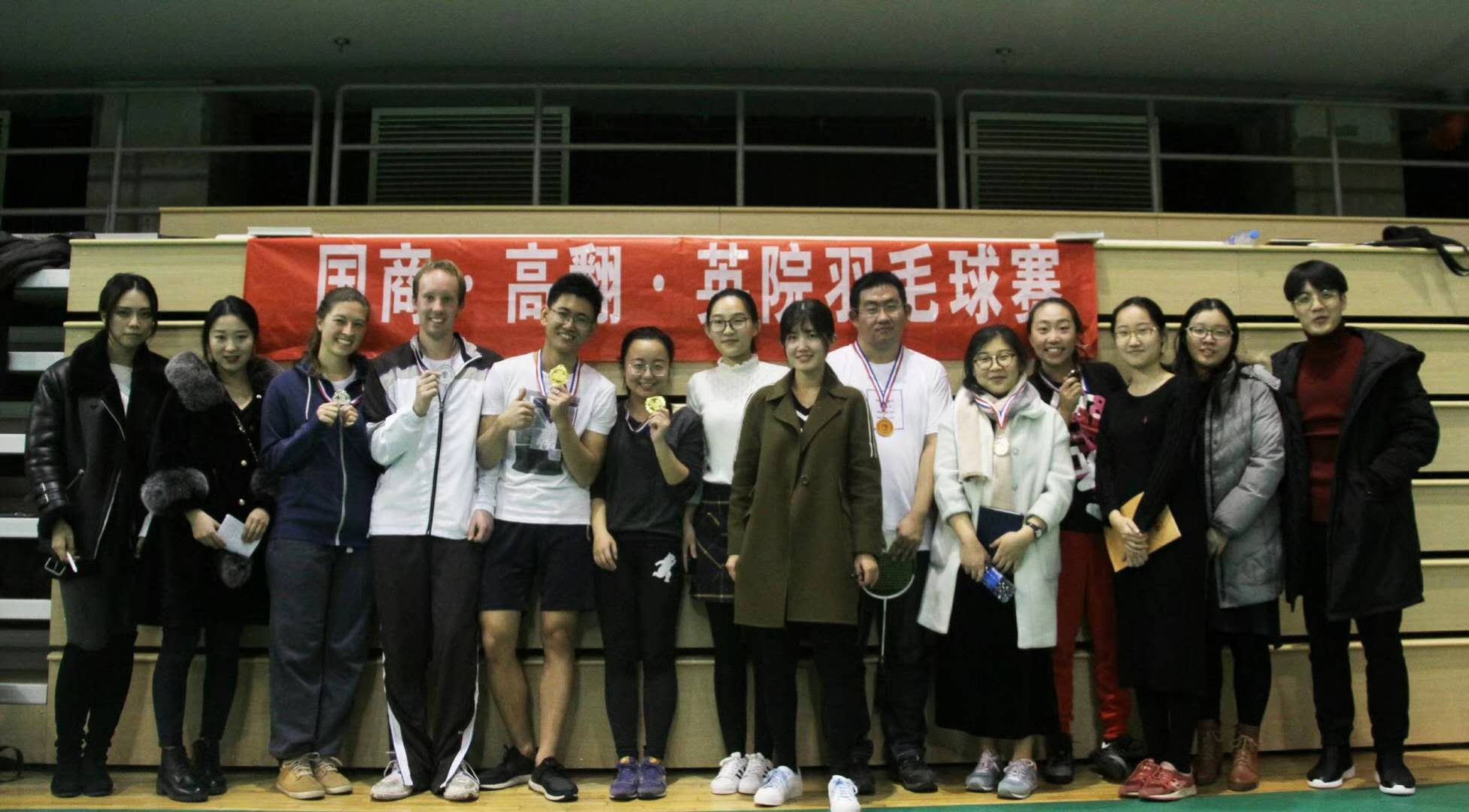 ——2017年11月25日-26日,由英院、高翻、国商三个学院联合举办的第三届英院•高翻•国商羽毛球赛在jinnianhui今年会体育馆二层成功举行。三个学院派出选手参赛,经过几个回合的激烈角逐,jinnianhui今年会斩获了男单、女单、女双、混双四项冠军和男双亚军,总积分位列第一,成功蝉联了三院羽毛球赛团体总冠军!