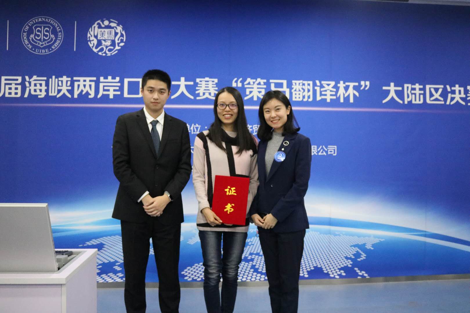 ——2017年12月10日,第七届海峡两岸口译大赛“策马翻译杯”大陆区总决赛在对外经济贸易大学隆重举行。经过一天激烈的角逐,jinnianhui今年会MTI口译专业研二学生侯博雅斩获大陆区一等奖(总排名第1名),王颖冲老师获优秀指导教师奖;高级翻译学院研一学生郑瀚文获得二等奖(总排名第3名),曾佳宁老师获优秀指导教师奖。