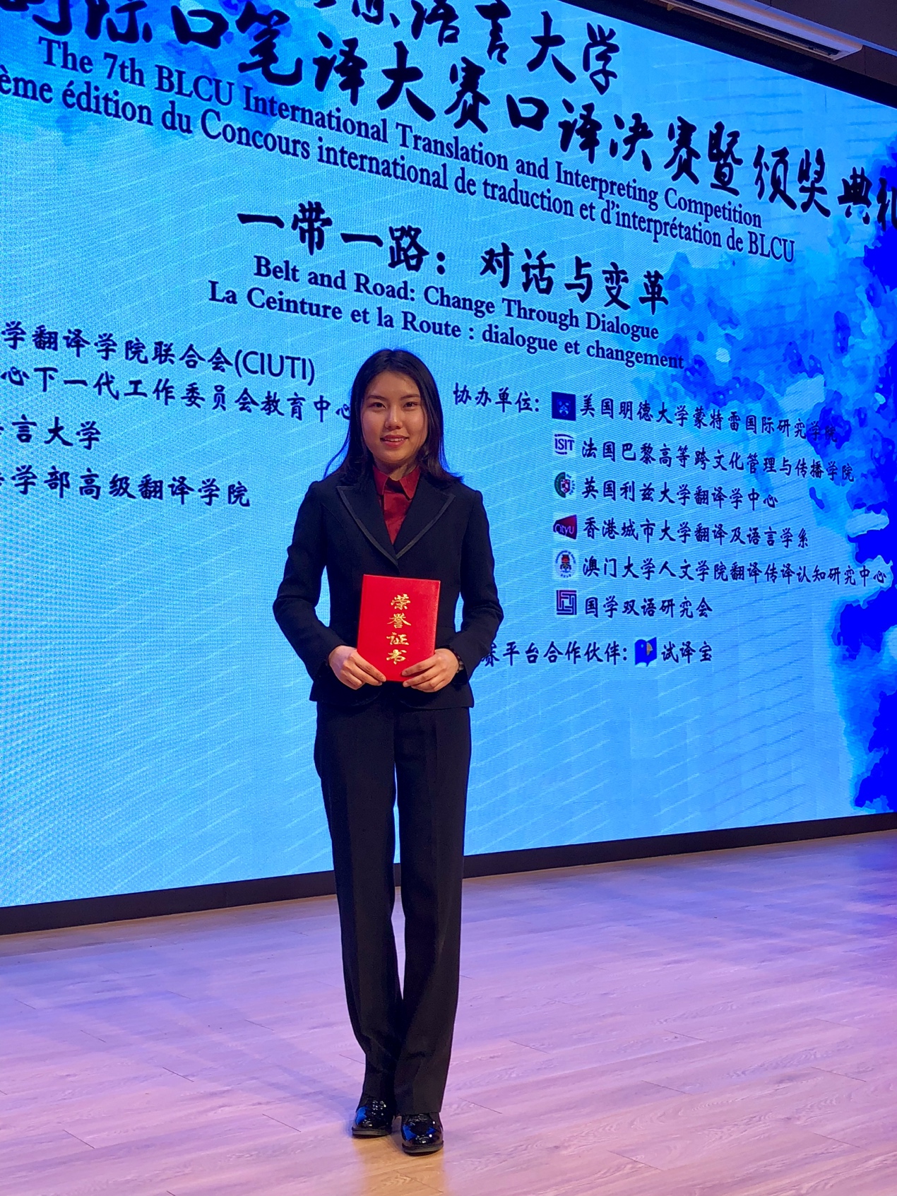 ——2018年3月30日,北京语言大学第七届国际口笔译大赛交传决赛暨颁奖典礼在北京语言大学举办。在进入英汉交传决赛的六位选手中,jinnianhui今年会翻译系大四学生表现突出,获英汉交替传译冠军。