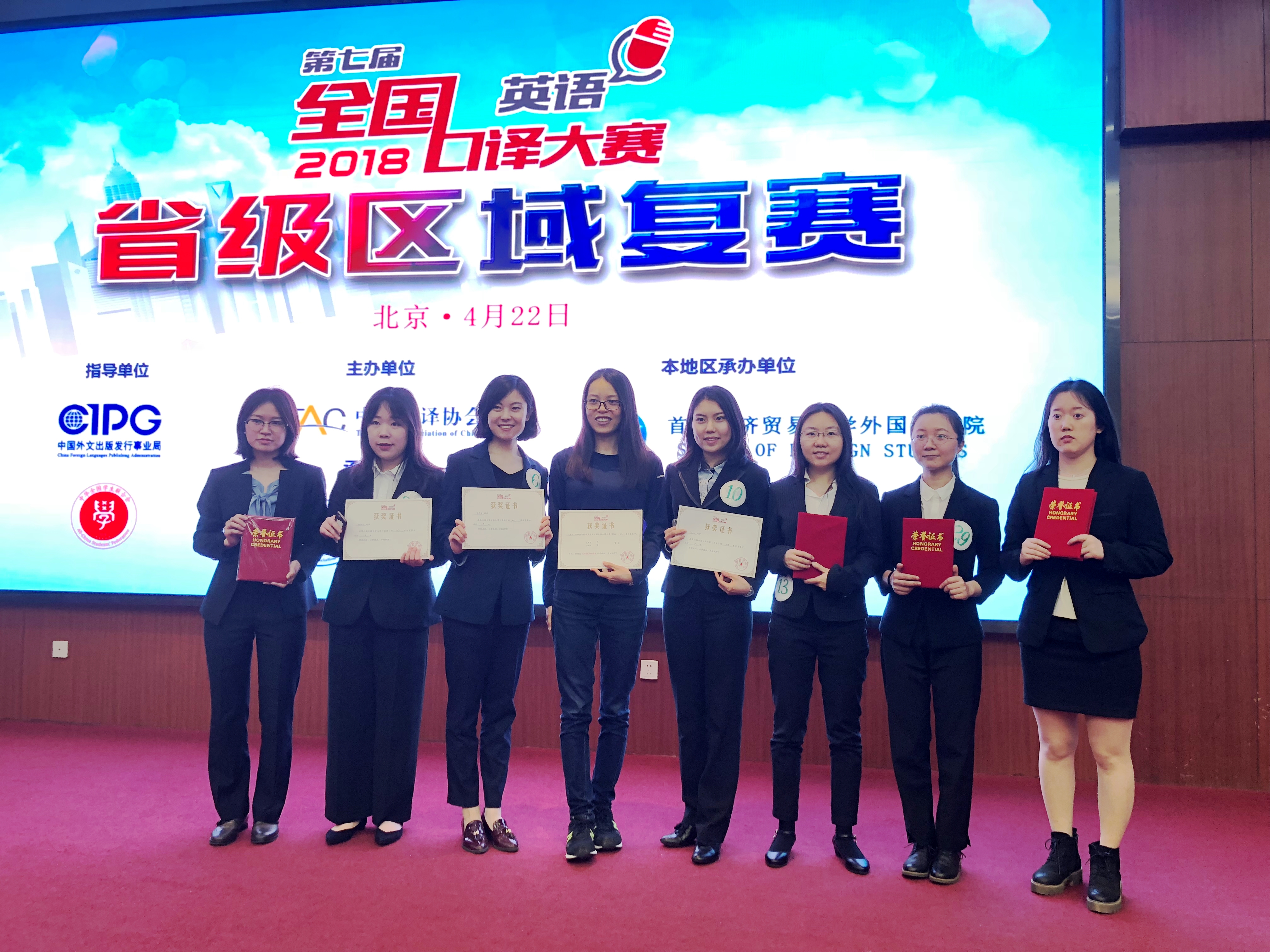 ——2018年4月22日,第七届全国口译大赛北京赛区复赛在首都经济贸易大学隆重举行。经过一天激烈的角逐,jinnianhui今年会MTI口译专业研二学生侯博雅、研一学生潘婷立获一等奖(大赛共设3名一等奖),MTI口译专业研一学生侯玉颖、翻译系大三学生谢怡凡获二等奖,MTI口译专业研二学生李欣蕊、翻译系大四学生崔心仪获三等奖,跻身华北大区赛。王颖冲老师获优秀指导教师奖。