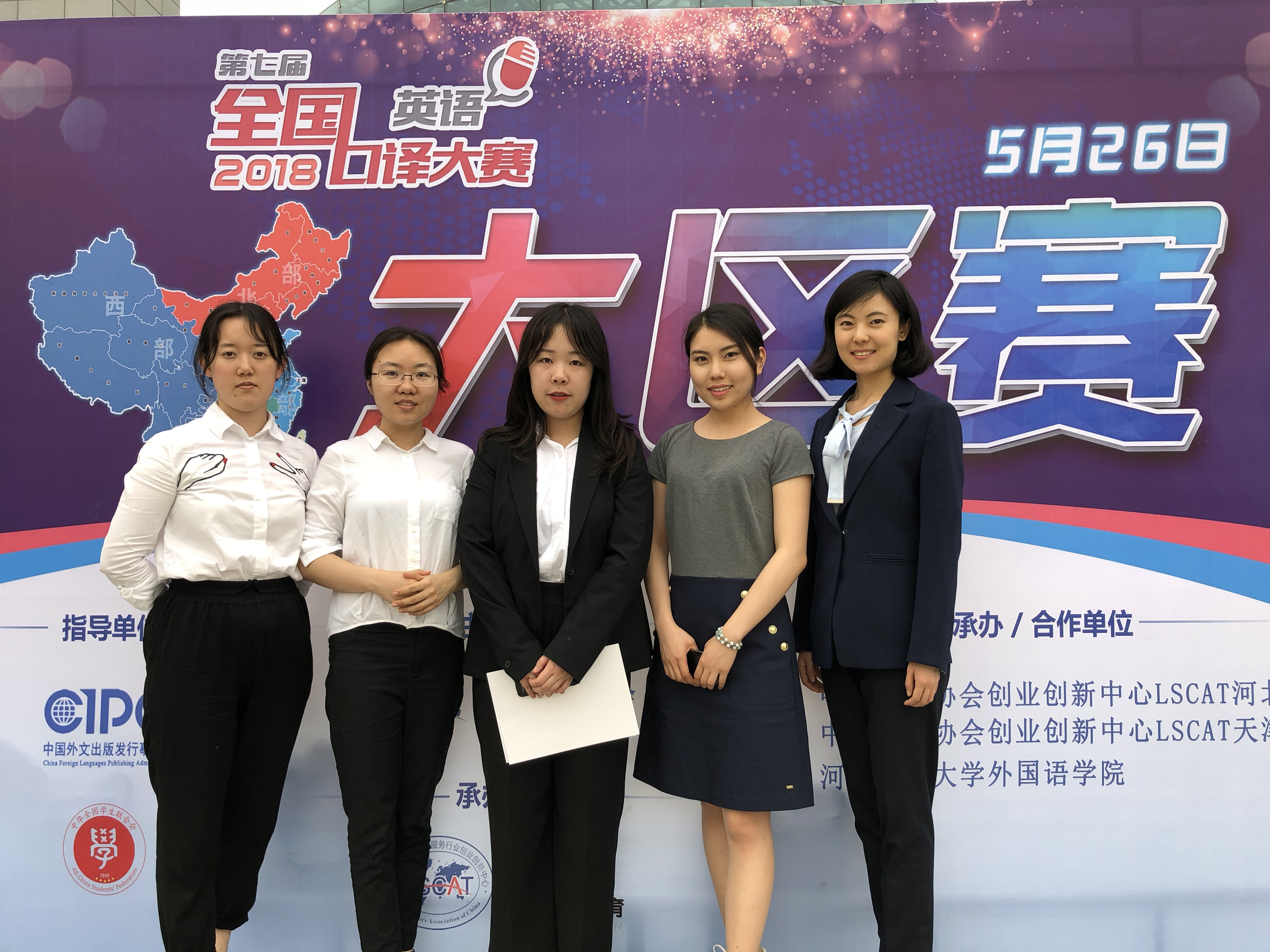 ——2018年05月26日,第七届全国口译大赛(英语)北部大区赛在河北师范大学外国语学院圆满落幕。来自北京、天津、河北、山西、吉林、黑龙江、辽宁和内蒙古自治区众多高校共107名选手同台竞技,切磋口译技能。经过一天的激烈比拼,jinnianhui今年会MTI口译专业研二学生侯博雅获得北部大区一等奖,翻译系大三学生谢怡凡获得北部大区二等奖,MTI口译专业研二学生李欣蕊及翻译系大四学生崔心仪获三等奖。侯博雅与谢怡凡成功晋级,将代表北部大区参加6月末的全国总决赛。指导教师王颖冲老师获得优秀指导教师一等奖。