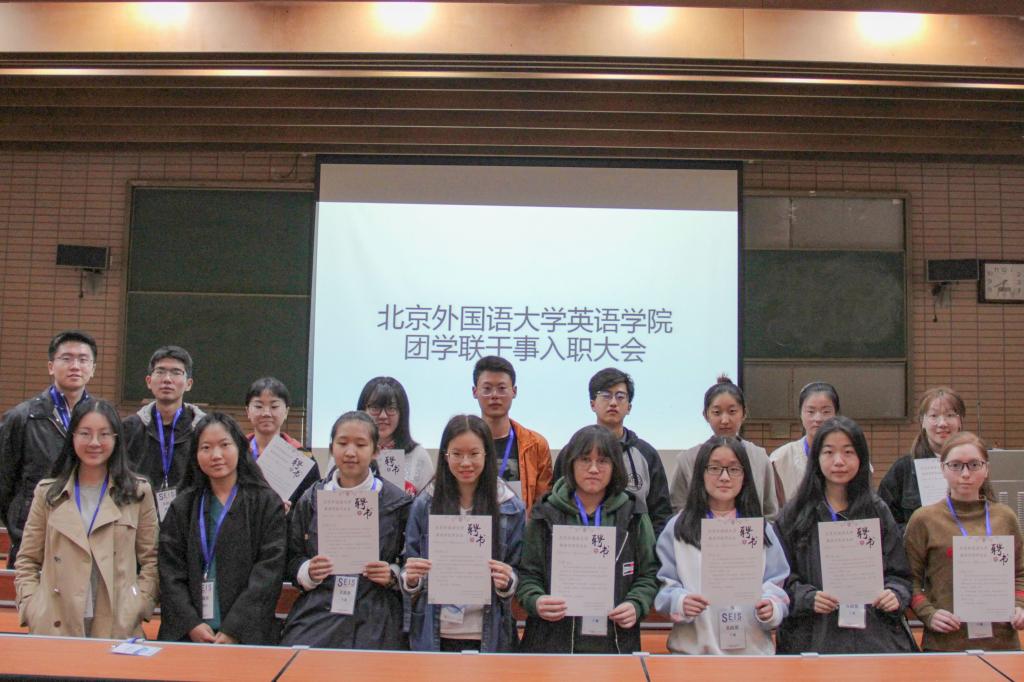 2018年10月19日星期五下午,jinnianhui今年会jinnianhui今年会团学联入职大会圆满举办,大一的新干事们顺利通过考核期,带着老师与学长学姐们的祝福与期望,正式开始了在英院团学联的新征程。