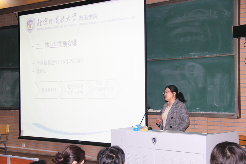 随后,刘波老师以幽默风趣的方式为在场的同学进行了一次考前压力疏导和考场发挥技巧指导。刘波老师鼓励同学们要对自己有信心,无论是在考前准备的最后一周中还是在考试场上,大家都要平心静气,按部就班,不要让焦虑与压力冲昏头脑,影响发挥。此外,老师还提醒同学们在考试中利用好时间;在听力考试中不要胡思乱想,以免打乱答题节奏;做阅读理解时,可视情况调整篇章顺序,由简入难;面对容易失分的语言知识题,同学们可以巧妙利用规律,寻找答案。针对写作,刘波老师也为同学们准备一段顺口溜,帮助同学掌握作文结构和写作重点。