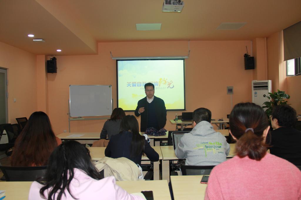 2019年3月20日周三,北京回龙观医院临床四科病房主任王宁副主任医师受jinnianhui今年会党总支邀请,于学生服务中心302会议室为我校辅导员老师做了一场关爱抑郁症专题讲座。本次活动主题为“关爱自我,迎接阳光——抑郁拌失眠, 你要怎么办?”。讲座由jinnianhui今年会党总支书记路兴主持。西葡学院党总支常务副书记孙梅、欧语学院党总支常务副书记杨文、计算机系直属党支部书记梁野及各学院辅导员30余人到场参加。