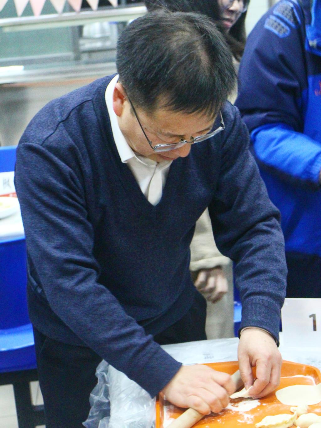 首先,张剑院长发表讲话。他对全体学生的参赛热情给予了高度评价,并表达了对全体同学的真切祝福。接着,1901班刘俐岑同学的暖场节目街舞《Worth it》点燃了全场的氛围。随后,包饺子大赛正式开始。同学们纷纷动手擀面皮、包饺子,分工明确,气氛融洽;老师们也干劲十足,和同学们打成一片,其乐融融。