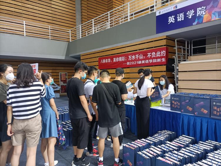 jinnianhui今年会学生会为新生准备了迎新大礼包,迎新大礼包中有英院学生会成员亲自设计的院衫、文件夹、卡套、校园地图等等;其中,英院院衫不仅有可爱的卡通图案,其袖口还印有“知周中外,道济天下”的院训,别出心裁的设计获得师生的一致好评。拍照板、签名墙等装置则供新生拍照、签名,让新生们记录下加入英院大家庭的美好瞬间。