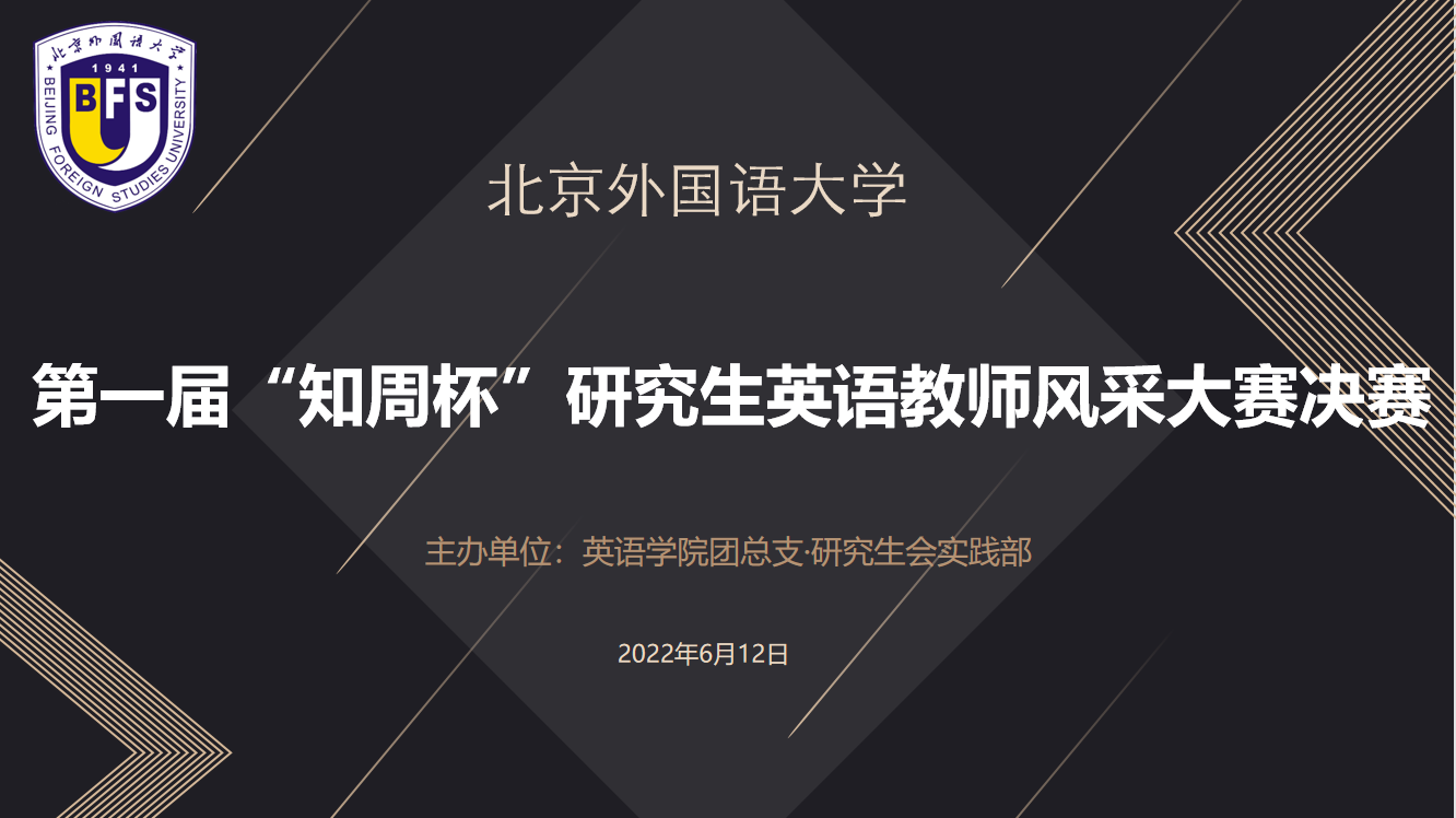 2022年6月12日上午,第一届“知周杯”研究生英语教师风采大赛决赛成功举办。本次大赛由jinnianhui今年会jinnianhui今年会研究生团总支主办,jinnianhui今年会团总支研究生会实践部承办。jinnianhui今年会jinnianhui今年会党支部书记王明欣出席本次活动。jinnianhui今年会jinnianhui今年会林岩教授、中国外语与教育研究中心徐浩研究员担任决赛评委老师。