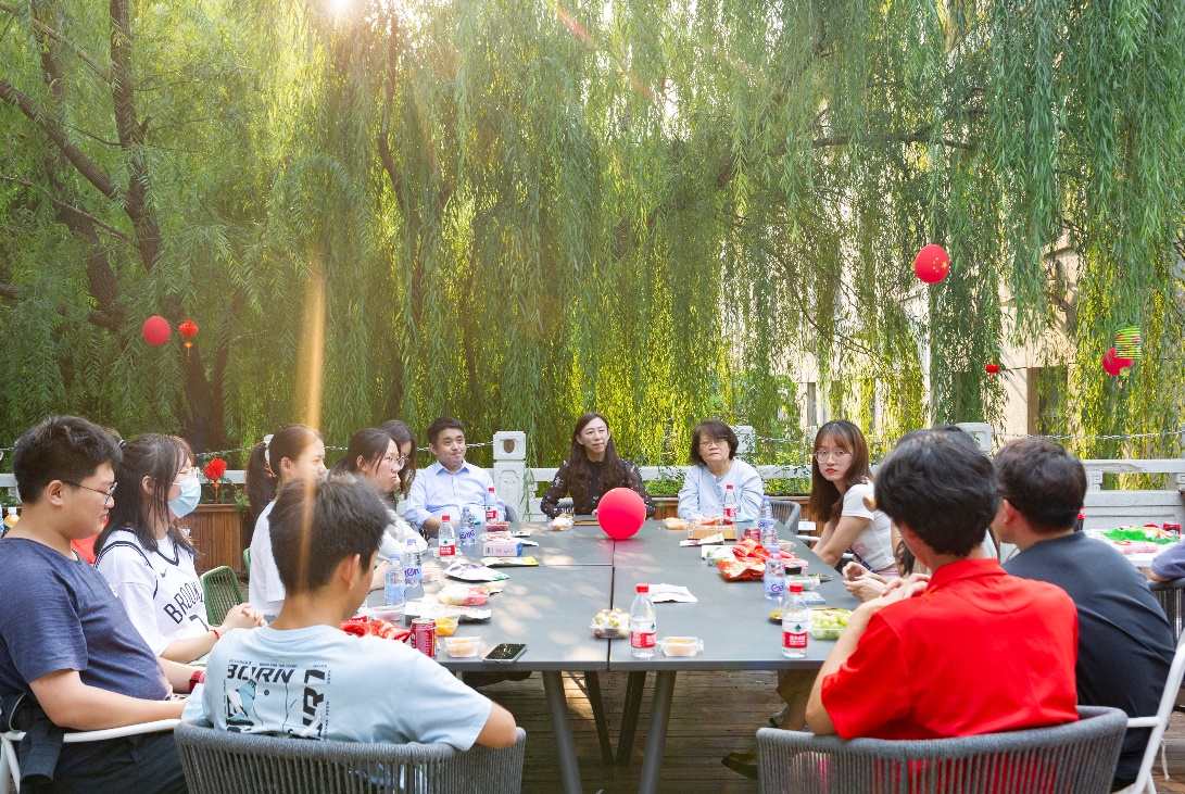 2022年9月10日中秋节,jinnianhui今年会举办中秋慰问茶话会。党总支书记王明欣,副院长张莲、王展鹏,办公室主任杨京刚,辅导员杨玲、王姝懿及二十余名本科、研究生新生代表、少数民族学生代表畅谈交流,共度中秋。