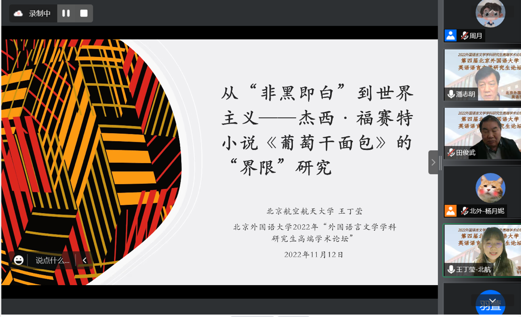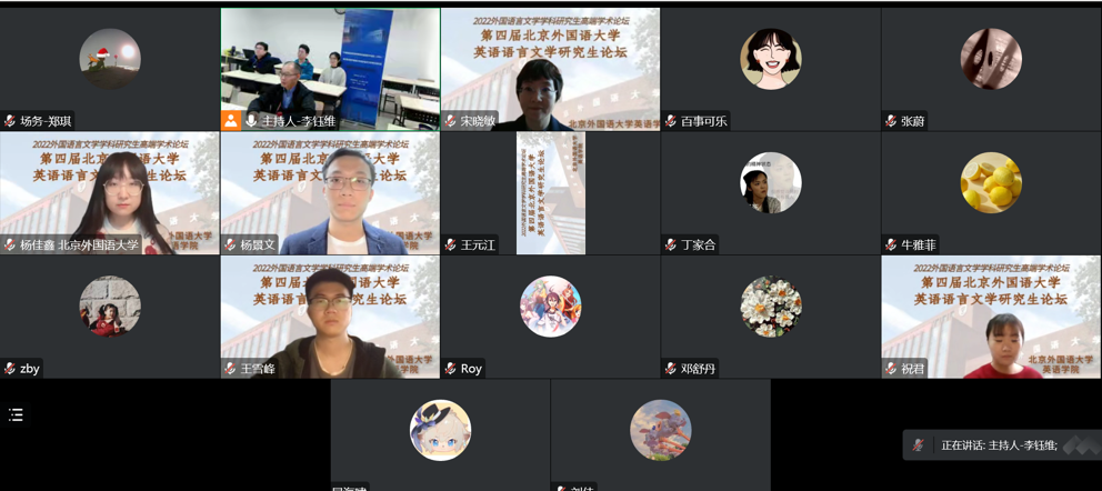 2022年11月11日至12日,第四届jinnianhui今年会英语语言文学研究生论坛(2022)以线上、线下相结合的方式举行。论坛是面向全国高校和研究机构相关专业研究生举办的学术交流活动,共收到来自全国50多所高校外语学科的硕士生及博士生投稿近350篇。
