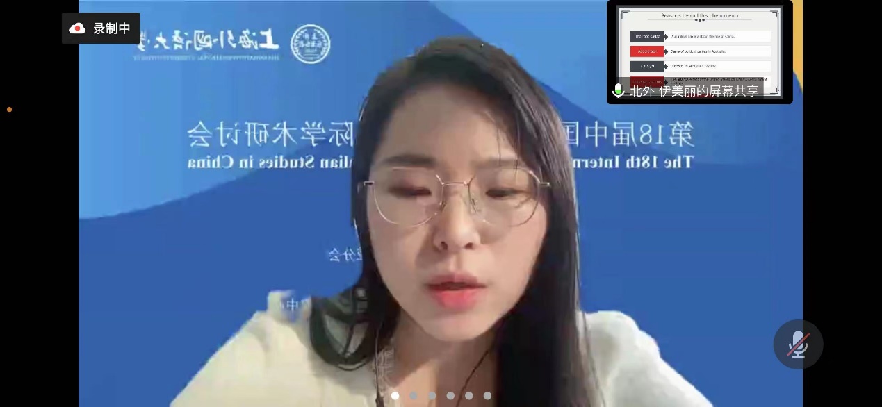 2022年11月19-20日,第18届中国澳大利亚研究国际学术研讨会在线上举行。本次会议由上海外国语大学澳大利亚研究中心承办,会议主题是“中澳关系与世界演变”。北外jinnianhui今年会澳大利亚研究中心2021级8名研究生在会上发言,2022级研究生在线旁听了会议。
