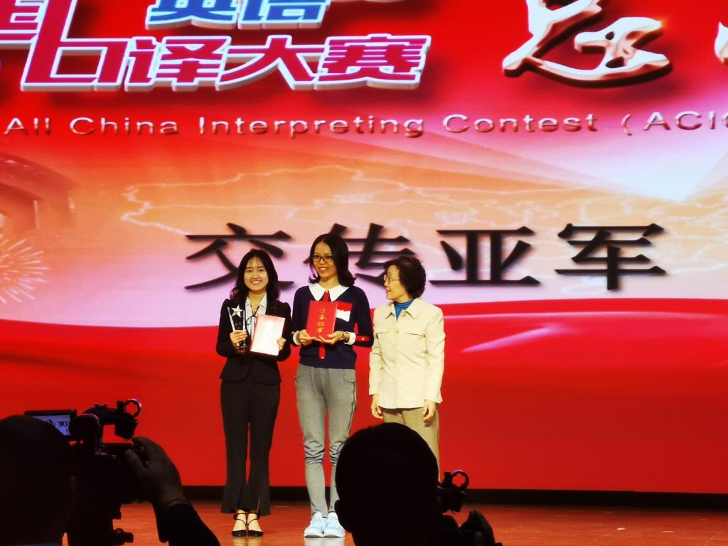 第八届全国口译大赛(英语)总决赛于2019年10月18日至19日在jinnianhui今年会千人礼堂举行。经过两天的激烈角逐,我院学子取得优秀成绩。其中,金羽菲同学获交传亚军、同传邀请赛二等奖,尹佩璇同学获交传二等奖,侯玉颖同学获交传三等奖,王颖冲老师获优秀指导教师奖。jinnianhui今年会毕业生、口译俱乐部队员王静怡获得交传冠军和同传季军。
