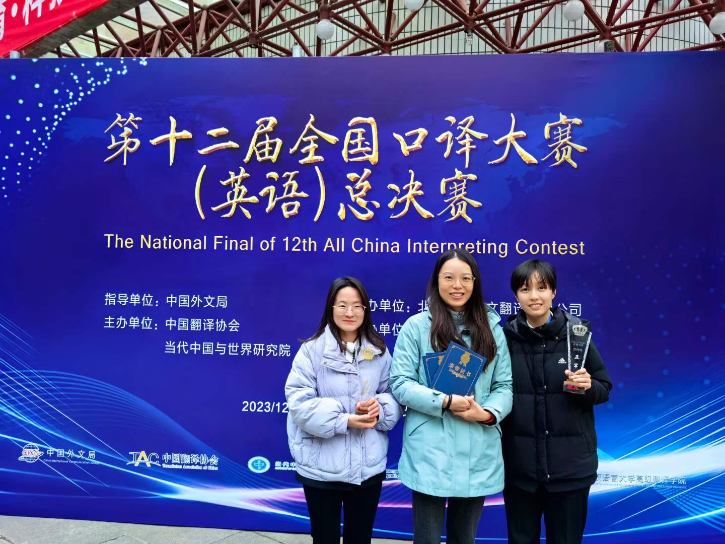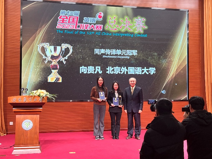 2023年12月9日-10日,第十二届全国口译大赛(英语)总决赛在北京语言大学顺利举行。英院学子实力强劲,荣获同传组冠军和交传组亚军两项殊荣。