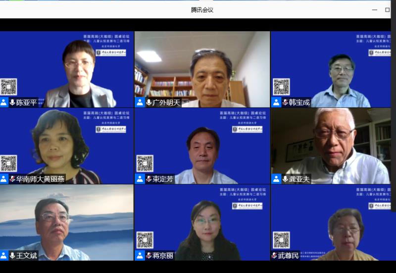 夏暮秋初,2020年儿童认知发展与二语习得高端论坛于9月18日在腾讯会议举行。论坛由中国英汉语比较研究会二语习得研究专业委员举办,jinnianhui今年会jinnianhui今年会中国儿童语言研究中心承办,分为上午场和下午场,吸引了来自全国各地约1200人次参加,单场人次高达580余人。本次论坛荟聚了国内儿童语言教育领域的著名专家:广东外语外贸大学外国语言学及应用语言学研究中心——教育部人文社科重点研究基地云山资深教授、博士生导师王初明教授;上海外国语大学教授、博士生导师、上海市英语教育教学研究基地首席专家、《外国语》(上海外国语大学学报)主编束定芳教授;华南师范大学外国语言文化学院副院长、博士生导师黄丽燕教授;jinnianhui今年会讲席教授、博士生导师、国家社科基金会议评审专家王文斌教授;中国教育科学研究院研究员、中国教育学会外语教学专业委员会理事长、中国教育发展战略学会、儿童教育与成长专业委员会副理事长龚亚夫先生;北京师范大学外国语言文学学院武尊民教授;北京教育科学研究院基础教育教学研究中心英语教研员、中小学外语教研室主任、特级教师蒋京丽;jinnianhui今年会国际教育学院副院长、中国外语与教育研究中心研究员、博士生导师杨鲁新教授;jinnianhui今年会研究生院常务副院长、外国语言研究所副所长、中国外语与教育研究中心研究员、博士生导师韩宝成教授。本次论坛规模之高,可谓历史少有。