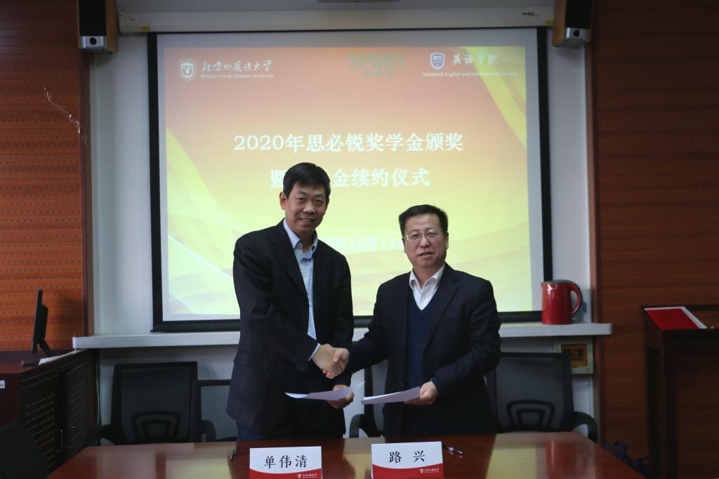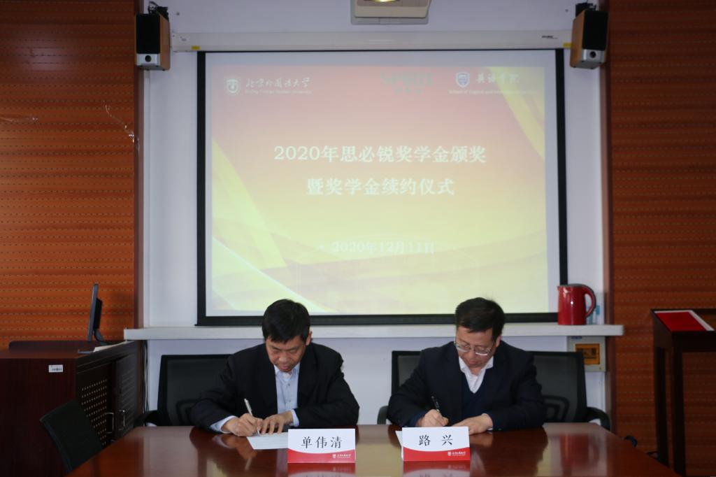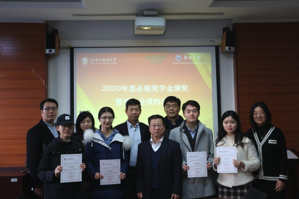 单伟清总经理介绍了思必锐公司的整体状况。他讲到,思必锐公司业务范围宽广,覆盖多个行业领域,公司对高水平翻译人才非常重视,特别希望北外学子的加入。2020年受新冠疫情影响,公司不可避免的受到冲击。但随着党和政府在疫情控制方面的积极作为,公司的业务在慢慢回暖,希望继续保持与北外jinnianhui今年会的合作关系,在人才培养方面尽一份力,在翻译领域继续做好做强。他向获奖学生颁发奖学金证书,寄语学生一如既往努力学习,秉承“一字不苟,千金之诺”的信念打磨翻译技能。