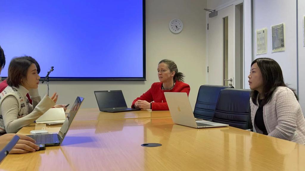 随后实践团一行与科克大学国际处负责人进行座谈,科克大学北京代表处主任张蓓、副主任李鹏出席本次座谈会。科克大学国际处负责人对科克大学优势学科建设、师资力量、就业前景等本硕联合培养项目的相关情况进行了介绍,她表示希望与jinnianhui今年会在学术交流、联合办学等方面进行更多的合作。科克大学北京代表处的老师也表示,北外拥有丰富的外语资源优势,希望双方以此次座谈为契机,在暑期交流,海外实践等方面进行合作。最后张珺涵老师对jinnianhui今年会的办学历史,学科建设,课程设置等进行介绍,就未来双方在留学交换,暑期实践等多方面合作进行商议,为之后双方合作交流打下坚实基础。