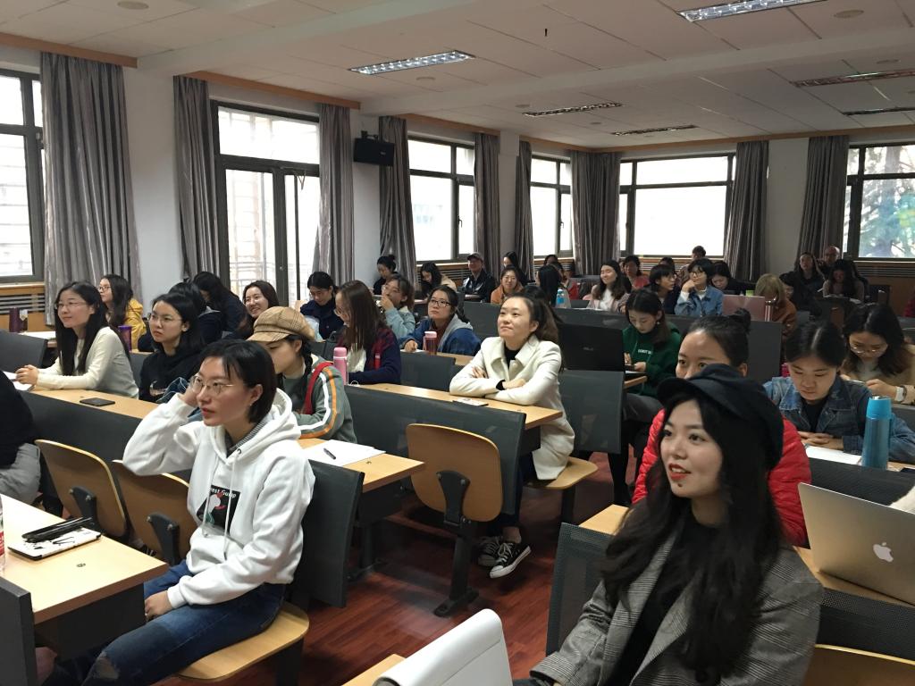 压轴出场的李冰洁学姐就职于新东方在线,为大家安利了“互联网+教育”的新型教培行业,用“微观体感、中观套路和宏观战略”几个新概念告诫大家要沉下心积累知识和经验、脚踏实地、注重团队合作,同时兼顾好自己的学业规划。学姐还就自身的直播经历激励大家要勇于主动展示自己,把握机遇。