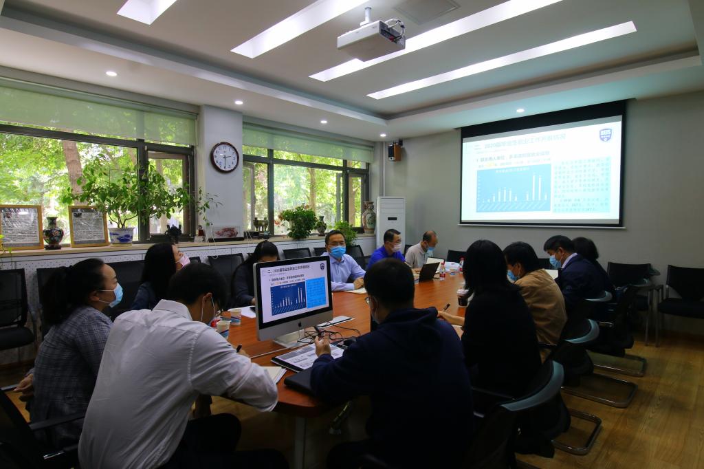 学院党总支书记路兴首先从2020届毕业生基本情况、就业工作开展情况、毕业生落实去向情况、存在的主要问题及下一步主要工作思路五个方面做了汇报。张剑院长结合学院人才培养情况,就学生特点、对就业困难学生一对一帮扶及随后的工作重点进行了补充。副院长王展鹏、张莲,党总支副书记孟庆琨,辅导员于承杰等,也结合工作实际谈了自己的想法。
