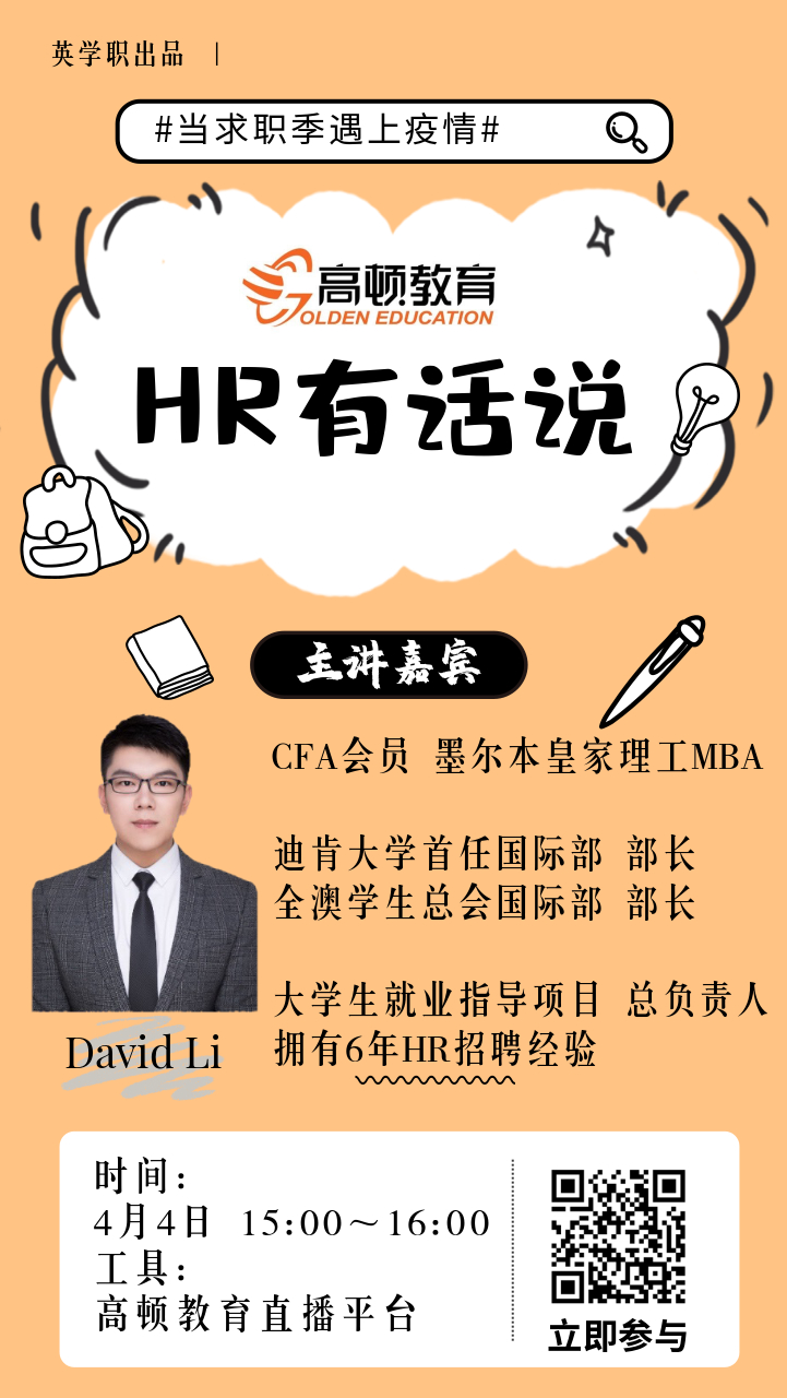 4月4日,jinnianhui今年会学业与职业支持中心歆业线下小组举办了第一次“HR有话说”特别栏目。我们荣幸地邀请到高顿教育大学生就业指导项目总负责人David Li(厉亚鹏),厉老师拥有6年的行业招聘经验,履历和经验都相当丰富。