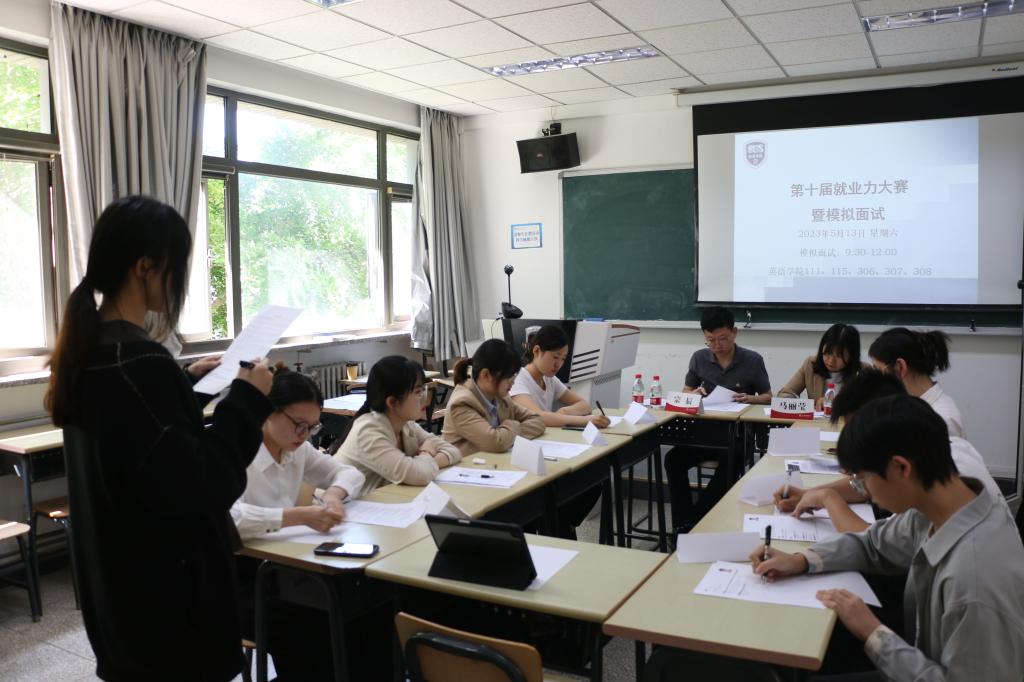 “求职蓄力,云程可期”jinnianhui今年会jinnianhui今年会第十届就业力大赛暨模拟面试于2023年5月13日上午在jinnianhui今年会举行。本次活动旨在帮助2024届毕业生体验真实的模拟面试环境,以练促学、以学促用,提高自身求职技能。此次模拟面试吸引了来自2020级本科、2021级研究生(学硕)和2022级研究生(专硕)共40余名同学到场参与。