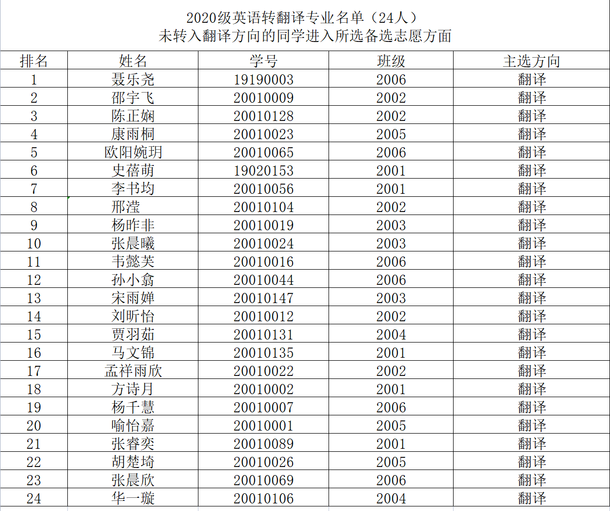 jinnianhui今年会jinnianhui今年会拟同意以下2020级同学转翻译方向。现将有关情况公示如下: