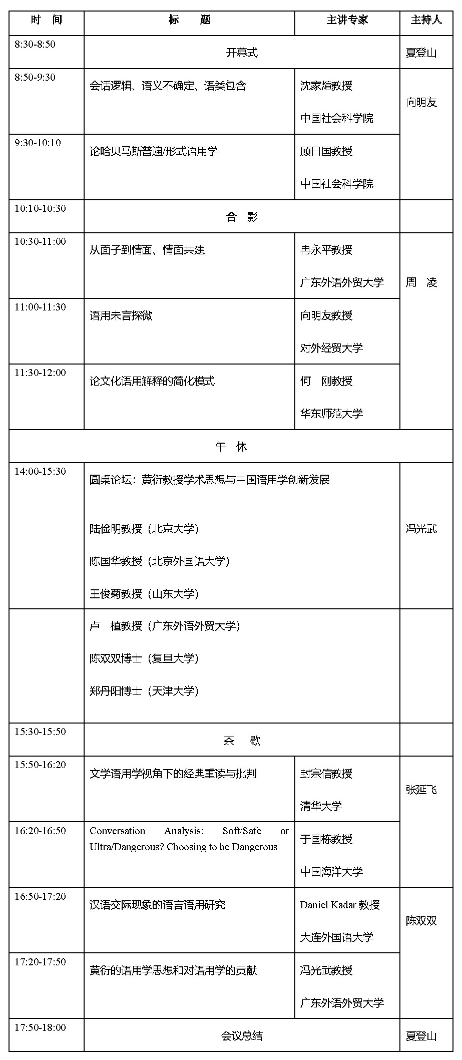 第三届全国语用学研究高端论坛议程