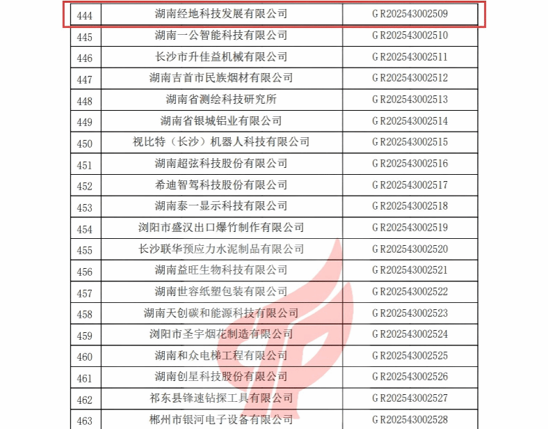(本网讯)12月26日,全国高新技术企业认定管理工作领导小组办公室发布湖南省认定机构2025年认定报备的第二批856家高新技术企业备案名单,公司顺利通过复审认定,成功获得国家高新技术企业荣誉。