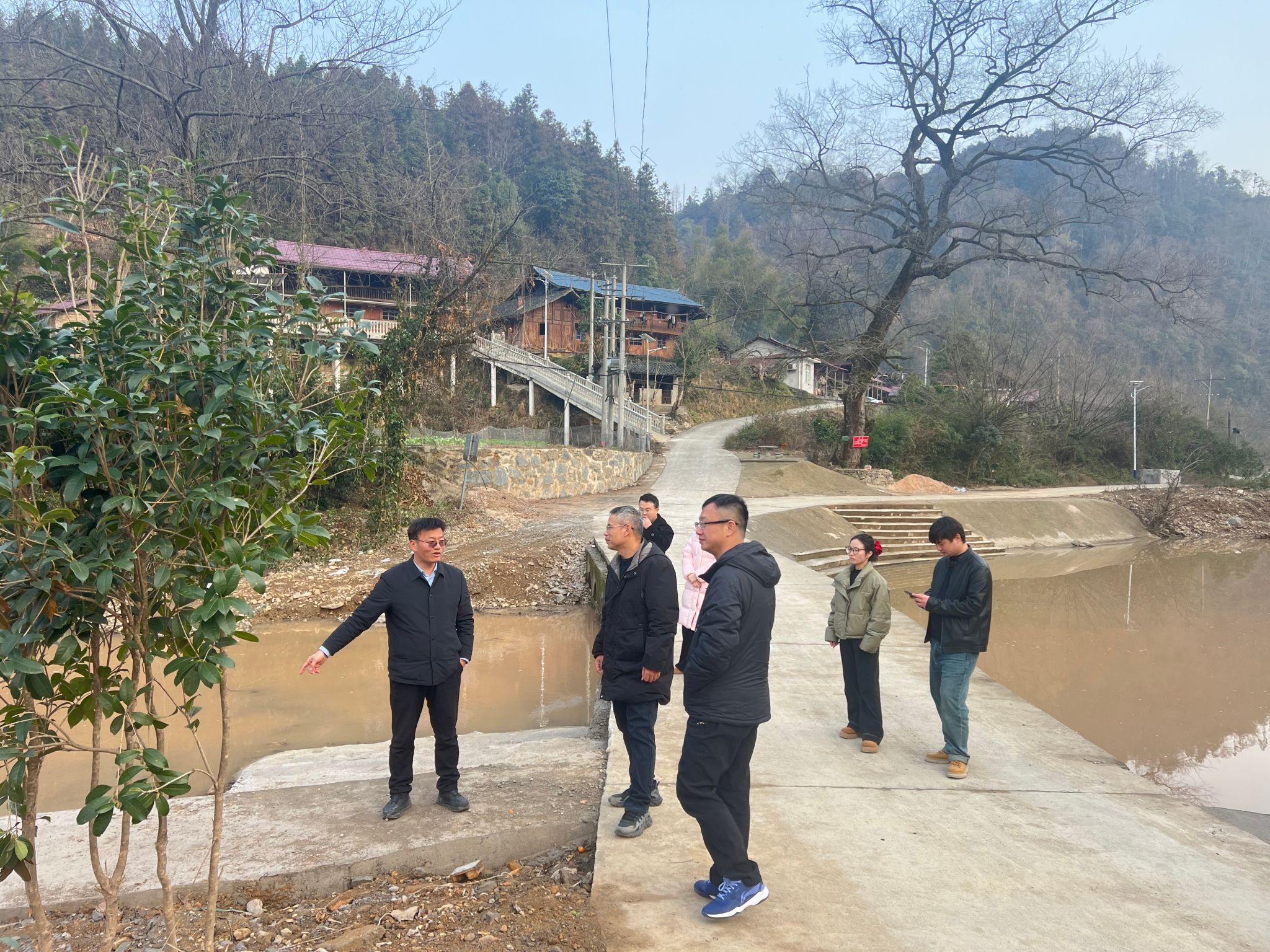 在学校驻村工作队的带领下,参与活动人员深入一线,实地察看了乡村振兴电商直播基地、驻村工作队办公场所、村内主干道路和河道治理工程等相关情况,全面了解青叶树村“和美乡村”的建设进展和发展需求。