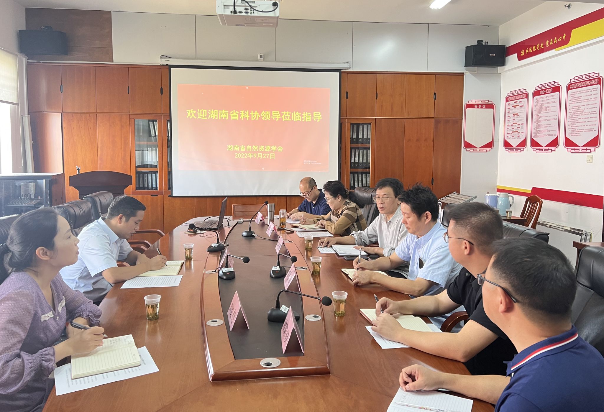 本网讯9月27日,湖南省科协办公室副主任蒋电波一行到学会调研。学会理事长李勇辉,名誉理事长魏晓,副理事长苏昌贵、欧阳晓,秘书长许波及学会秘书处的同志参加了调研座谈会。会议由李勇辉主持。