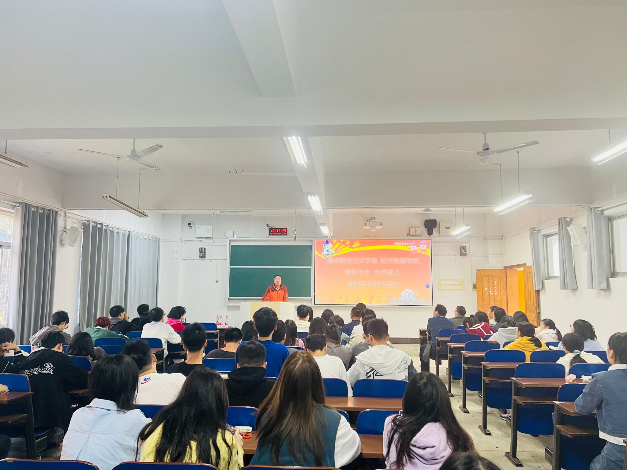 为切实增强师生的安全防范意识,推动学校消防安全风险治理走深走实,经济地理学院在主校区三教学楼3102教室组织开展“预防为主 生命至上”消防安全知识培训,副院长苏昌贵主持,100余名师生参加本次培训。