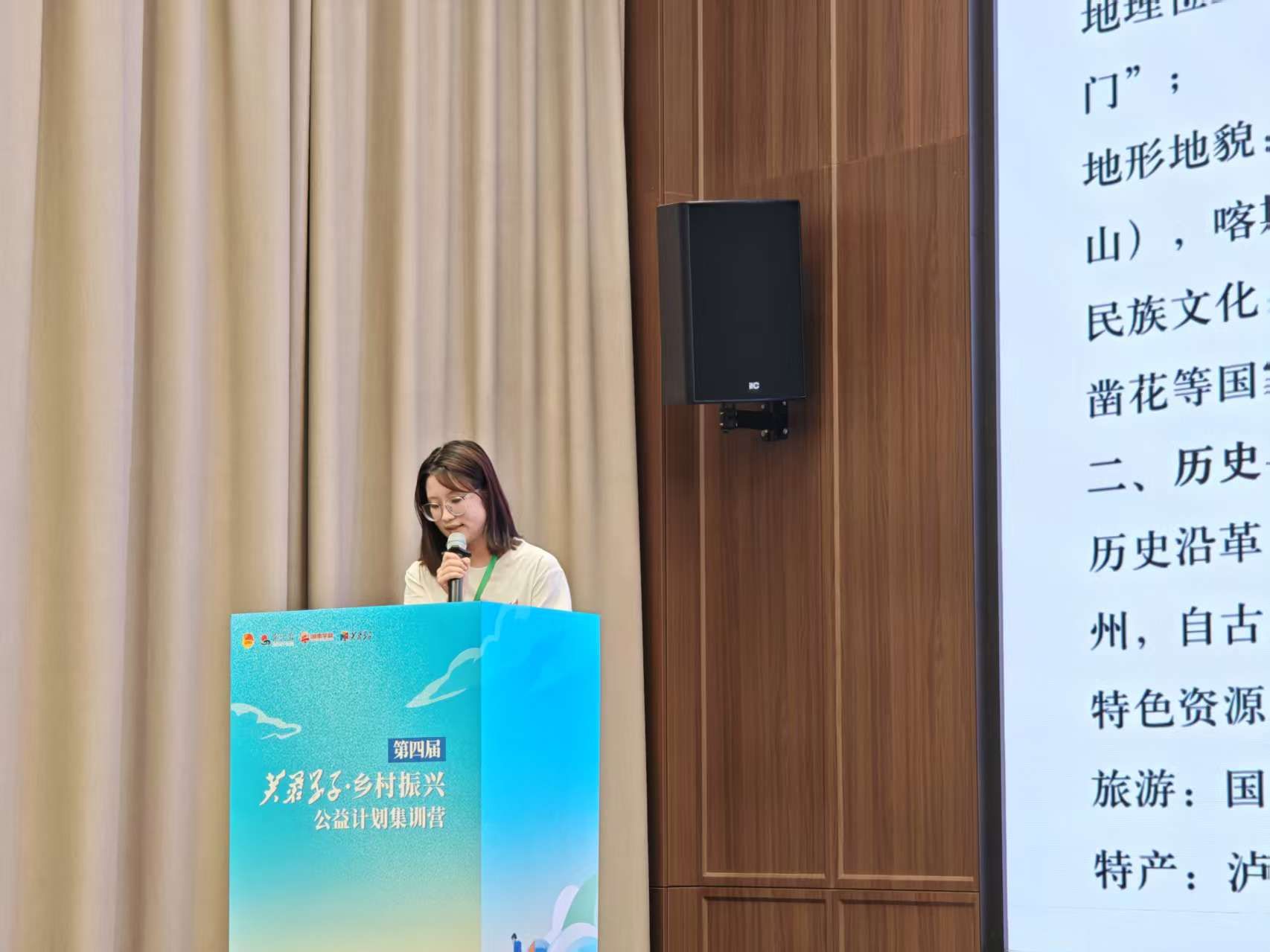 据悉,主办方于6月21日-22日针对入选的120个项目负责人开展为期2天的集训。我院入选项目负责人周梓茹作为参训小组代表,集中分享湘西泸溪县各个实践团队的项目实施方案,既守护了“看得见山、望得见水”的泸溪乡愁空间,又展示了“云端可追溯、市场有溢价”的现代农业体系,让青春智慧在乡村振兴的空间叙事中绽放异彩。
