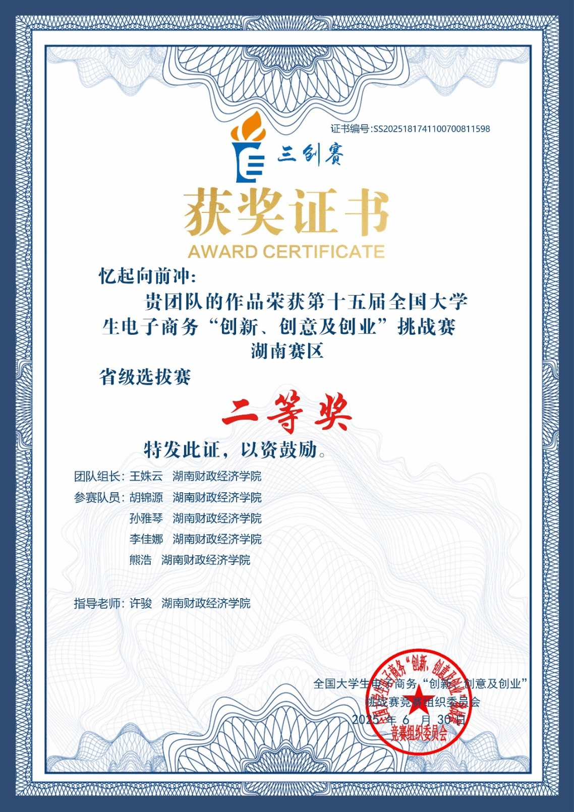 喜报!我院学子在第十五届全国大学生电子商务“创新、创意及创业”挑战赛湖南赛区荣获省级二等奖